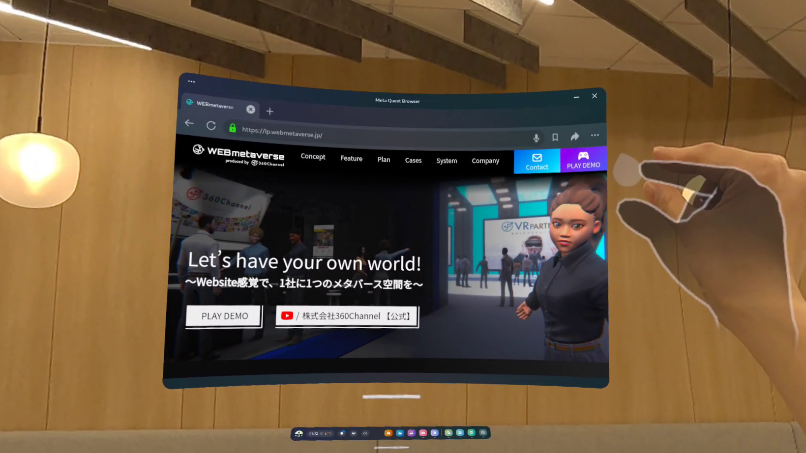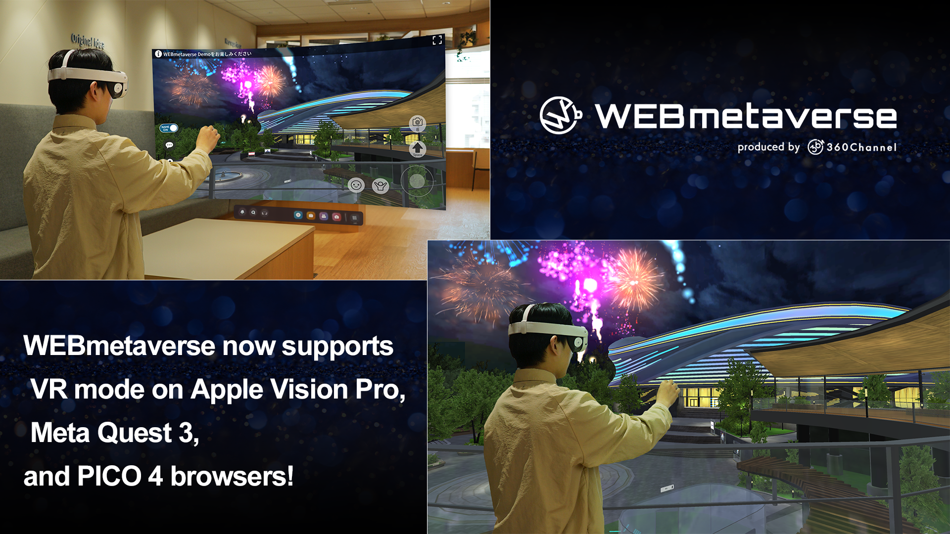 Tokyo, Japan — 360Channel, Inc. (Headquarters: Minato-ku, Tokyo, CEO: Keiji Komatsu), a group company of COLOPL, Inc. (Headquarters: Minato-ku, Tokyo, CEO: Takashi Miyamoto), is pleased to announce its "WEBmetaverse" system is now compatible with VR mode in browsers for Apple Vision Pro, Meta Quest 3, and PICO 4.
